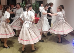 A Mikulásnak táncoltak a 7.d.s diákok a 16. kerületben Iskolánk 7.d osztályos tanulói felkérést kaptak a 16. kerület Német Nemzetiségi Önkormányzatától, hogy az idei Mikulás ünnepségükön egy nemzetiségi tánccal kedveskedjenek a vendégeknek és természetesen a Mikulásnak is. A diákok a táncot Denk Tünde tanárnővel gyakorolták be. Nagy izgalommal készültek a szereplésre. A helyszínen megjelent kis és nagy vendégek nagy tapssal jutalmazták a produkciót.